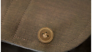 ボタンの止め方なのですが、鳥の足のように糸で止めてあります。通常はクロス掛けであったり、二の字であったりしますが、ちょっと変わった止め方。
