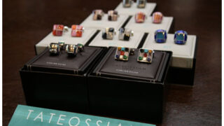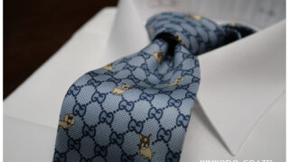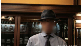 当店のオーダーネームです。お作り頂いたシャツのヨークの裏。首の後ろ辺りにシャツのブランドの織りネームが入っているところに付けるものです。