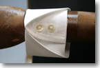 【カフスボタンを使われる方に】ダブルカフスでなくてもコンバーチブルと言いまして、カフスのボタンホールをボタン側にも開けることによって写真のようにカフスも付けることができます。通常のボタン止でもカフスボタンでもどちらでも可能なことからコンバーチブルと呼んでいます。